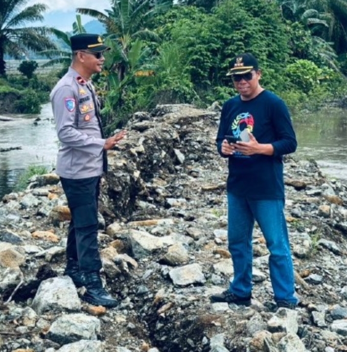 Pemerintah kecamatan bersama aparat kepolisian dan pemerintah desa melakukan pengecekan serta berkoordinasi terkait langkah penanganan darurat yang perlu segera dilakukan.